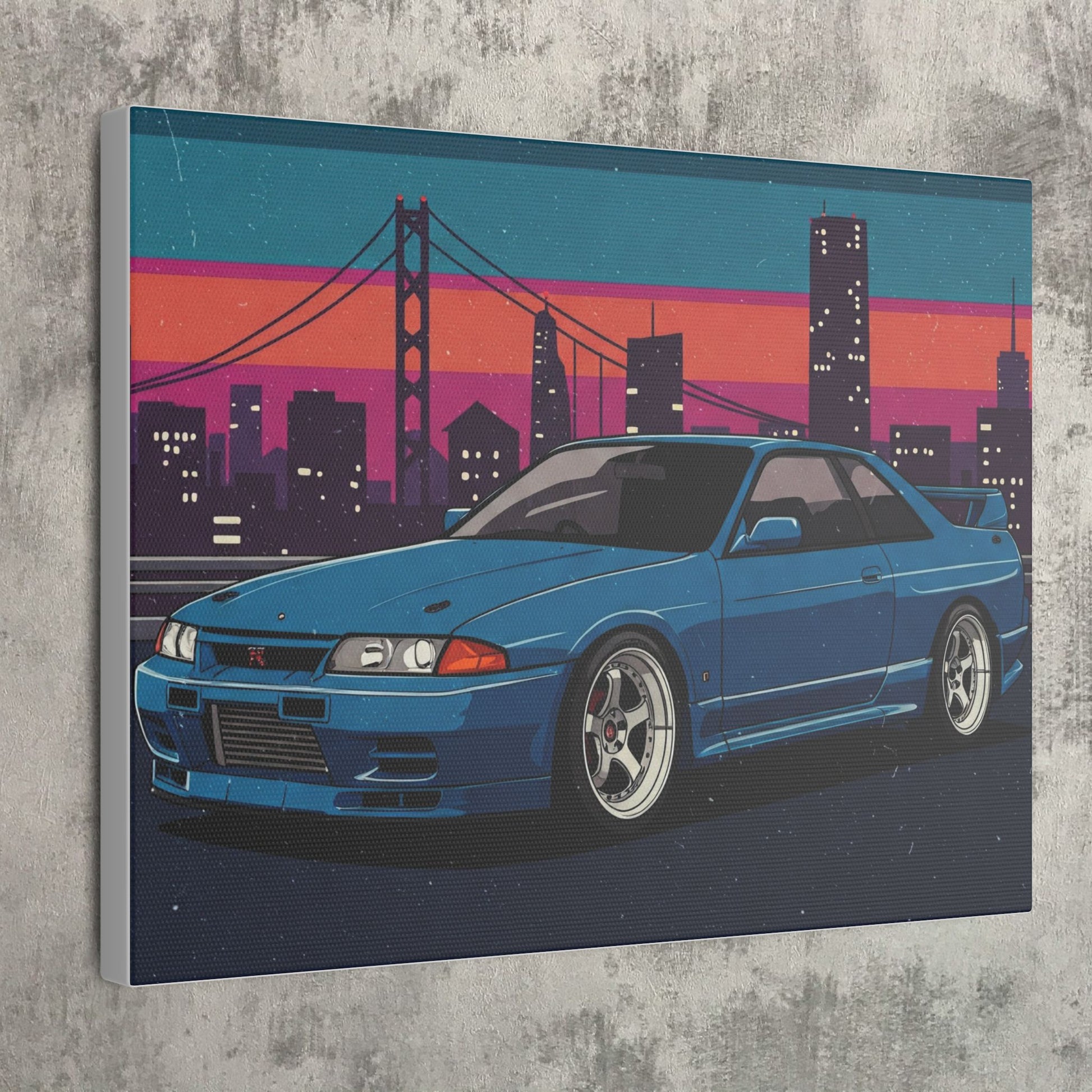Immerse yourself in the vibrant night life with this JDM Skyline Canvas. Perfect for car enthusiasts or anyone who loves cityscapes. Ideal for decorating a living room, bedroom, or office space. Great gift for jdm car fans. Grab yours today!